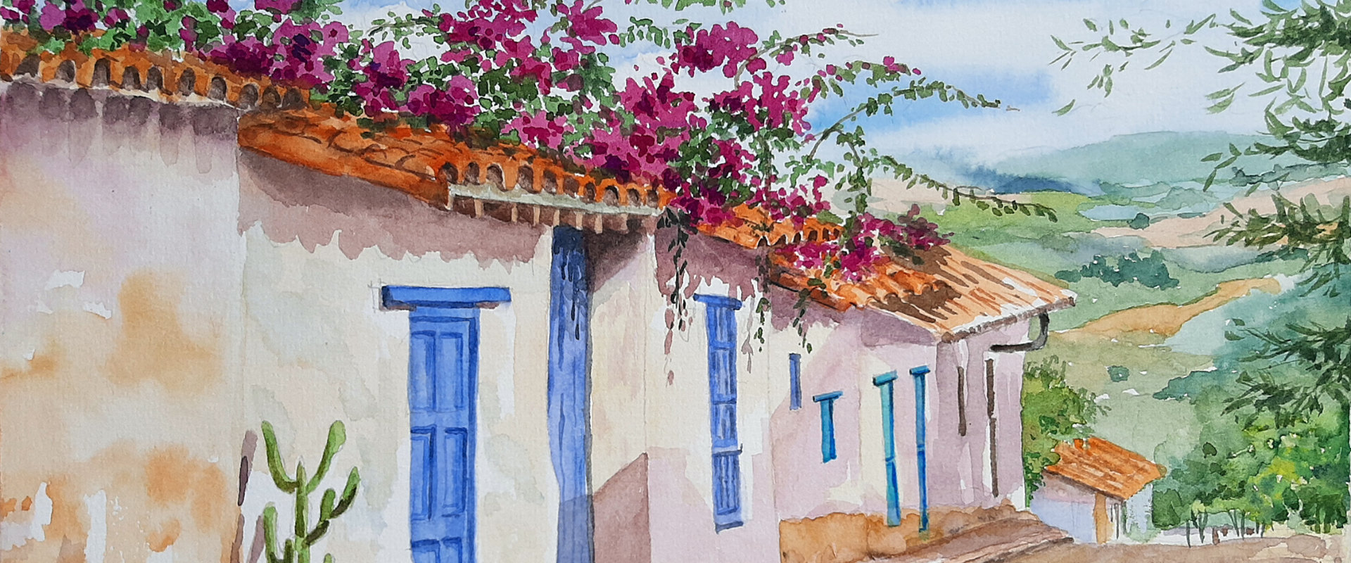 Martha Ruiz is an artist based in Barichara Colombia, whose work has been shown in individual and collective exhibitions. She has dedicated herself to teaching at her own workshop studio here where she is based. Her surroundings have become the reason for her inspiration and she is permanently immersed in the observation of nature from which these fabulous works spring. These possess an expressive richness that favours color and composition, with her main works being done in watercolor on paper.